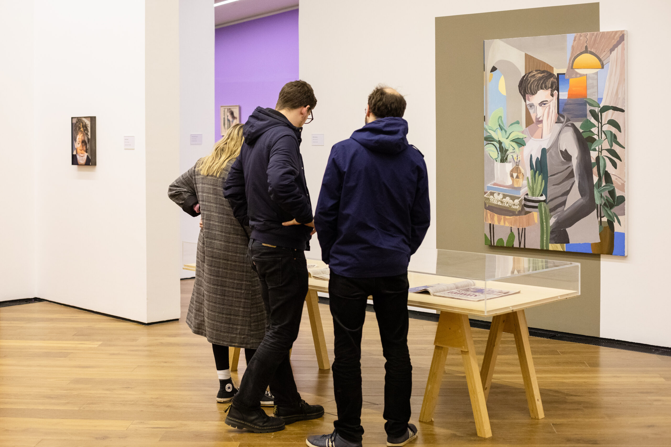 ‘El Muniria’ with paintings by Michael Raedecker and David Hockney, John Moores room, Walker Art Gallery, Liverpool, 2019. Photo by Pete Clarke