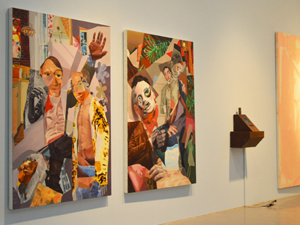 ‘Six Degrees of Separation’ curated by Juan Bolivar at Wimbledon Space. On right, artworks by Andy Hsu and Alex Gough, 2013